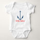 Marinheiro pequeno náutico do creeper | do bebê da âncora do barco. Roupa bonito do bebê com tema marítimo e texto personalizable. Os azuis marinhos ancoram aweigh com design de texto vermelho feito sob encomenda. Ideia náutica do presente do chá de fraldas do divertimento para o menino ou a menina. Roupa do esporte da navigação para miúdos pequenos.