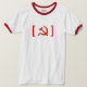 Martelo e foice clássicos de URSS com umas citações por Vladimir Putin na parte traseira.