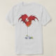 Um pequeno dragão vermelho giro se aproxima de uma azeitona verde em um copo de martini