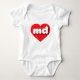 Este peitoril apresenta um coração vermelho vibrante contendo as letras maiúsculas md, brancas, arredondadas e em negrito, uma abreviação lúdica para o estado de Maryland, o antigo estado de linha.