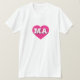 Esta t-shirt tem um coração cor-de-rosa vibrante e comovente, contendo as MÃES em letras maiúsculas, brancas, a abreviatura oficial de Massachusetts, o estado da baía.