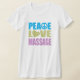 Massagem do Amor pela Paz... O que mais você precisa na vida? Presente perfeito para qualquer viciado em massagens. Não importa se você é um massagista profissional treinado, você dá o melhor tapete de costas, você está estudando/treinando para se tornar um massagista ou um fisioterapeuta, ou você só ama fazer massagens...você é viciado em massagem! Engraçado ideia de presente para qualquer amante de massagens. Excelente para qualquer massagem diva. Design apresenta um coração e um sinal de paz. Veja nosso compro por um Amor de Paz mais divertido e único...camisas e presentes.