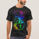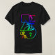 Um teste padrão abstrato de formas e de símbolos geométricos e matemáticos em um t-shirt escuro.