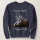 Uma pintura pastéis de um majestoso lobo cinzento adorna esta divertida camiseta "Lobo Alfa Feliz = Matilha Feliz". Personalize alterando o texto para se adequar a você!