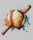 Apresentando a adição perfeita a qualquer coleção de entusiastas esportivos: um design de aquarela impressionante com um taco de beisebol cruzado com uma bola de beisebol em uma exibição vibrante de cor e movimento.