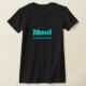Camiseta feminina, em branco, com texto especial: Maui, Ilhas Havaianas. Personalizar este item ou comprar como está.