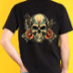 Um design de crânio ousado e eletrificante, infundido com estética vintage e grunge. Este trabalho de arte apresenta efeitos reluzentes, cores vibrantes e texturas de abstrato, criando uma vibração suja e rebelde. Perfeito para quem ama o alternativo