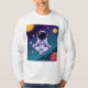 "Astronauta + Meditação" combina temas do espaço e da mentalidade. Essas camisetas exibem astronautas em poses meditativas cercadas por elementos cósmicos como planetas e estrelas. Usando cores vibrantes e pastéis, esses designs evocam um sentimento calmo e surreal, perfeito para aqueles interessados tanto em atenção quanto em exploração espacial.