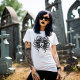 Medusa T-Shirt. © Desejos do Coração Escuro. Esta tenda tem uma foto de Medusa nela. Na mitologia grega, Medusa, também chamada Gorgo ou Gorgon, foi uma das três Gorgons. Medusa é geralmente descrita como uma mulher com cobras vivas no lugar do cabelo; sua aparência era tão horrível que qualquer pessoa que a olhasse foi transformada em pedra.