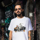 CAMISETA MEIO AUMENTO E ESQUELETO GRÁTICO EM UM COFÃO