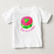 Camiseta de bebê doce com melão de verão brilhante e ilustração de coração. Texto "One in a Melon". Cores rosa e verde.