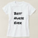 Na moda caligrafia, esta incrível camiseta branca apresenta "Melhor Enfermeira Nunca" escrita em lindas fontes pretas. Escolha entre uma variedade de cores e estilos. Personalize sua camisa hoje!