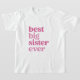 Tornar-se um irmão mais velho é um grande negócio! Ajude o seu pequeno a compartilhar o entusiasmo com essa camiseta de garotas bonitinhas. Este texto divertido só apresenta as palavras Best Big Sister Ever numa letra minúscula e deformada em tons alternativos de rosa claro e escuro.