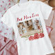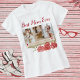 Quadro floral moderno e bonito de rosas em cores vermelha, rosa e verde e colagem de fotos para um Dia de as mães Feliz com camiseta combinando com a família. Perfeito para uma amada mãe. Personalize fotos e nomes.