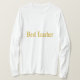 A melhor professora branca, "T-Shirt Long Sleeves" Esta é uma camiseta básica de longo alcance para mulheres. A camisa tem o melhor professor na frente em texto dourado. A fonte de texto é uma fonte de texto americano no estilo de rico. Você pode alterar o texto clicando no botão Personalizar. A camisa está disponível em muitas cores. A camisa é feita de 100% de algodão pré-encolhido.