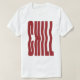 Elevate your casual wardrobe with a touch of surrealist style. This crisp white crewneck features a bold, maroon-colored "CHILL" graphic, uniquely distorted with a liquid wave effect. Perfect for those who want to project a laid-back vibe with a modern, artistic twist.