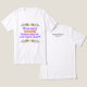A t-shirt chegou dentro do tempo anunciado e apresentou-se com todas as características que estavam anunciadas. Boa qualidade do tecido e bons acabamentos. O tamanho veio conforme o pedido. Perfeita! Fiz apenas uma pequena personalização no texto, e o mesmo assim veio, bem como todo o restante texto, devidamente impresso e exactamente como estava anunciado na página. Sem falhas!