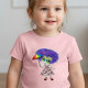 Doce menina com um guarda-chuva, vestindo uma camiseta adorável ideal para bebês, conquistando corações em todos os lugares.