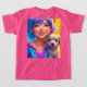 Menina de anime castanha bonito e cabeleira com um cachorro que Ai gerou trabalho de arte. Bonita para uma adolescente ou adolescente que gosta de anime.