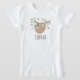 Esta camisa de crianças bonitinha e feminina moderna apresenta um lindo, desenhado à mão, rabisco de preguiça-cama com flores e folhas. Este design floral encantador também representa um lugar para você adicionar o nome da sua garota. O perfeito design da selva para qualquer amante de preguiça!