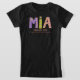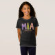 Flores gráficas e estrelas divertidas, roxo, coral e camiseta verde limão em negrito. Ideal para um presente personalizado para uma garota chamada Mia, vem com um nome pesquisado que significa Mia, Desejada. Uma beleza graciosa e amada ou você pode personalizar o texto com seu próprio significado ou o que o nome significa para você, se necessário. Ideal como presente especial de aniversário ou celebração. Se precisar de ajuda com seu próprio nome personalizado, entre em contato comigo. Gráfico, cor-de-rosa, roxo e letras brancas, arte criada exclusivamente por Sarah Trett para www.mylittleeden.com e nome