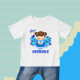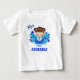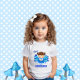 Menina linda adorável com vestido azul e flores azuis ao redor