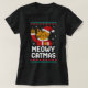 Cute festive cat in knitted look with Santa outfit and winter snow details. Perfect for holiday humor fans who enjoy cozy seasonal themes.