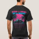 This design features a stunning synthwave aesthetic: a bold, pink and teal sunset with iconic palm trees and a geometric grid that screams Miami Vice and classic arcade games. The vibrant colors pop on the dark shirt, ensuring you’ll be the life of the party!