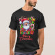 Celebre as férias com uma camiseta festiva de Natal, com uma árvore decorada, Papais noeis alegres e a inscrição "Feliz Natal". algodão macio e confortável. Presente perfeito ou visto festivo.