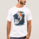 Um peixe koi vibrante com escamas laranja e branca natação graciosamente no meio de água azul escura e turva. O movimento dinâmico da água cria um pano de fundo energético que destaca a elegância dos peixes.
