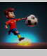 Foto em um design animado 3D é um jogador de futebol com uma bola de futebol com fogo embaixo dele