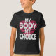 Design de texto com a citação "Meu corpo, minha escolha". Defenda a dignidade humana, a igualdade de gênero, os direitos das mulheres e a autodeterminação.
