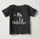 Minha T-Shirt do Fantasma do Bebê Cute de 1rua de Halloween apresenta o texto "My 1rua Halloween" em moderna tipografia de caligrafia branca com letra branca e acentuada com um bebê ou fantasma de menina fofo. Perfeito para a primeira festa de Halloween ou celebração do bebê. Elaborado por ©Evco Holidays www.zazzle.com/store/evcoholidays