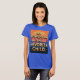 Esta é uma Imagem Ultramarina Meu Filho-De-Direito é Minha Camiseta Infantil Favorita. O fundo é um céu pôr do sol com listras que são laranja, rosa e azul. As palavras estão em bege e laranja. A imagem está na frente e atrás da camiseta. A camisa é feita de 100% de algodão. A camiseta é uma camiseta curta de mulheres azul.