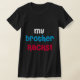Meu Irmão Rocks bebê t-shirts escuras em estilos de manga curtos e longos com design de texto colorido de branco, vermelho e azul, excelente para irmãos que pensam que o irmão é o melhor!