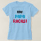 Um texto divertido e colorido e design cardíaco com texto vermelho, azul e preto ou branco que lê Meu Papa Rocks em T-shirts irmãs, chapéus de camisa, camisetas de manga comprida, T-shirts de raglan, T-shirts orgânicas e outras roupas perfeitas para que o mundo saiba que você tem o melhor papa de sempre!