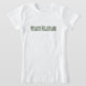 Texto verde lendo "STEALTH MILLIONAIRE" em uma fonte semelhante à encontrada na moeda. Nunca se sabe quem pode ser milionário. Nem todos vivem grandes com roupas esfarrapadas, o carro de rico, ou casa grande. Não anunciam que estão em boa situação. Eles são milionários furtivos. Vista esta camisa e você não é realmente um milionário furtivo, mas se ninguém acredita que o seu segredo é seguro; talvez você esteja escondido à vista. Para milionários furtivos e aqueles que trabalham nisso.