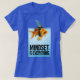 Uma camisa representando um peixe dourado nadando em água azul clara, com uma barbatana de tubarão acoplada a um cinto nas costas. A barbatana do tubarão aparece acima da superfície da água. Na parte inferior da imagem, há um texto proeminente que diz "Mindset é Tudo." Esta camisa distintiva combina diferentes elementos para fornecer uma mensagem poderosa. É representado como um peixe dourado nadando em água azul clara, expressando pureza e tranquilidade. O que distingue essa design é a presença de uma barbatana de tubarão amarrada a um cinto na parte de trás do peixe, que simboliza o desafio do perigo e da força interior. A barbatana aparece acima da superfície da água, aumentando o contraste e o apelo visual da imagem. Na parte inferior da imagem, há uma afirmação proeminente em linhas grossas: "Mindset é tudo." Esta frase reflete a importância de uma mentalidade e de um pensamento positivos na consecução do sucesso e na superação dos desafios. É um lembrete que a maneira como olhamos e abordamos a vida desempenha um papel crucial na consecução de nossos objetivos.