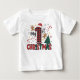 Minha Primeira Camisa de Natal Candy Cane Bebê Bebê Bebê Bebê Rapariga Bebê Menino T-Shirt mostra o texto "Meu Natal de 1rua" na moderna tipografia escrita, acentuada com canas doces, pessoas de pão de gengibre, árvore de Natal e flocos de neve. Presente de Natal perfeito para uma menina ou um bebê. Criado pelo Evco Studio www.zazzle.com/store/evcostudio