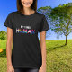 Uma t-shirt com uma mensagem inclusiva, apresenta "a minha tribo" em letra branca e "humana" em cores LGBTQ.