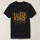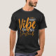 Esta t-shirt preta apresenta texto estilizado em laranja e branco. A palavra "Vibe" é grande e flui em um roteiro laranja, com "MY WHOLE" acima dela em letras brancas menores. Abaixo, "NÃO PERTURBAR" é escrito em uma combinação de letras brancas em bloco e um script laranja menor. A design transmite um desejo de paz e tranquilidade.