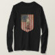 Desenho do Minuteman da concórdia com a primeira bandeira americana de 13 colônias (Betsy Ross) no fundo na forma do protetor. Você pode adicionar sua mensagem.