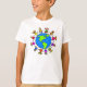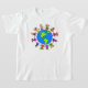 Miúdos felizes bonitos e diversos que guardaram as mãos em torno de um globo que caracteriza o mapa do norte e da Ámérica do Sul.