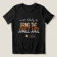 Deixe o lado selvagem brilhar com esta divertida camiseta de festa de solteira com tema safari, com uma citação lúdica "Mais Provável para TRAZER O SUMO DE JUNGLE" inspirada em instintos animais na natureza. Perfeito para a tribo noiva que sai numa celebração aventureira, esta design de na moda num gradiente de cor quente inclui um modelo personalizável para adicionar o nome e/ou título do evento da noiva e a data. Cada camisa na coleção celebra uma personalidade diferente no esquadrão noivo. Excelente para fotos em grupo, festas com temas safari, bacheloretes de destino e memórias inesquecíveis. Procure ID1156 para ver outros produtos neste conjunto de design de bachelorette divertido.