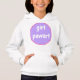 Camiseta Moça ligada com um doce de capuz rosa e roxo
