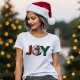 Esta camisa modelo de foto para o Natal e feriados permite colocar sua foto de família dentro da letra O na palavra JOY, decorada em padrões de xadrez vermelha e verde.