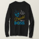 Moderno, na moda DREIDEL COMO UMA Camiseta de Lingança Longa. A design mostra um sonho ciano azul e uma tipografia azul, amarela e branca. No canto superior direito, você pode ler os nomes dos quatro lados do sonho em um formato de quebra-cabeça (HEI pode ser alterado para HEY ou HAY, se necessário). Dentro O do BOSS é uma pequena estrela de David. Esta pode ser sua camisa feia e divertida de Hanukkah para vestir para que você possa mostrar sua experiência em estilo durante a temporada de Hanukkah. Ideal para comprar para toda a família ou grupo de amigos. Escolha entre uma ampla seleção de designs de Chanucá por Designs Bereanos. Também em azul marinho.