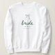 Modern Script Green Coquette Bow Bride's Name Wedding/Bachelorette Custom Sweatshirt. A minimalistic and elegant, olive green custom bride's name sweatshirt, designed with "bride" script lettering, and a coquette aesthetic and bow. Personalize with bride's name, and your wedding or bachelorette weekend location.