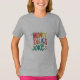 A design de camiseta para "Money Talks Piada" apresenta um personagem divertido e animado de notas de dólar com um sorriso viciado, segurando um microfone como se estivesse fornecendo uma rotina de comédia stand-up. A nota do dólar está vestida de óculos escuros e gravata de arco, acrescentando um toque humorístico. Ao redor do personagem estão bolhas de fala animadas com trechos engraçados relacionados a dinheiro. A frase "Piadas do Money Talks" é exibida em uma fonte vibrante e em negrito acima, com as letras ligeiramente inclinadas para um efeito lúdico. O design combina humor e jogo de palavras, fazer-o como uma adição divertida e espirituosa a qualquer armário.