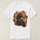 Um macaco zangado numa jaqueta de couro. Ele sai das chamas com sua moto.